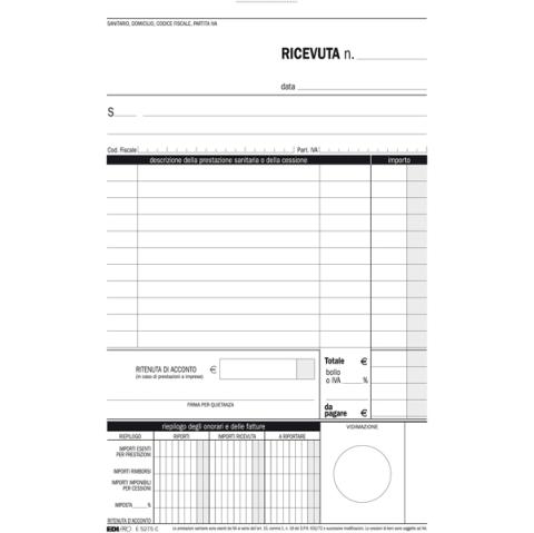 Blocco ricevute sanitarie numerate - 50/50 fogli autoricalcanti - 23 x 15cm - Edipro