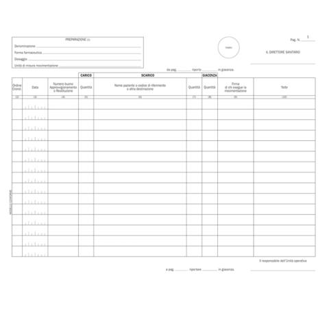 Descrizione / dati tecnici: Registro carico/scarico stupefacenti unità operative 100pag num.
