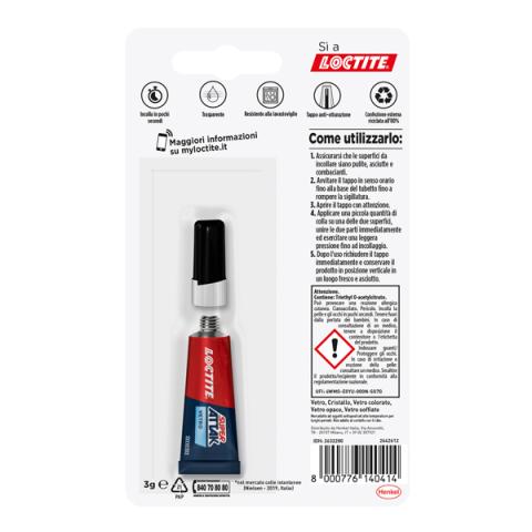 Descrizione / dati tecnici: Super Attak Vetro. Adesivo istantaneo specifico per vetro e vetro/metallo. Grazie ad una composizione trasparente, non lascia aloni garantendo un incollaggio invisibile. È inoltre resistente all’acqua, ai detergenti e a temperature elevate (resiste anche in lavastoviglie).