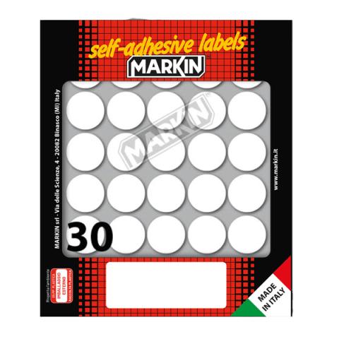 Etichette adesive tonde - in carta - permanenti - diametro 22 mm - 30 et/fg - 10 fogli - bianco - Markin