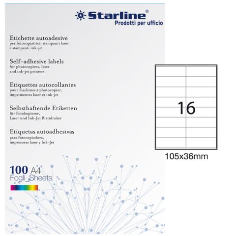Etichette adesive - in carta - permanenti - 105 x 36 mm - 16 et/fg - 100 fogli - bianco - Starline