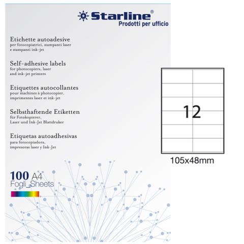 Etichette adesive - in carta - permanenti - 105 x 48 mm - 12 et/fg - 100 fogli - bianco - Starline
