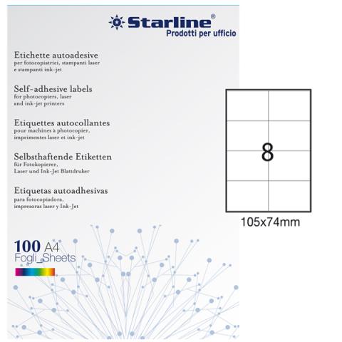 Etichette adesive - in carta - permanenti - 105 x 74 mm - 8 et/fg - 100 fogli - bianco - Starline