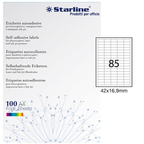 Etichette adesive - in carta - permanenti - 42 x 16,9 mm - 85 et/fg - 100 fogli - bianco - Starline