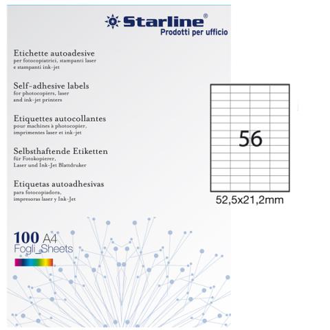 Etichette adesive - in carta - permanenti - 52,5 x 21,2 mm - 56 et/fg - 100 fogli - bianco - Starline
