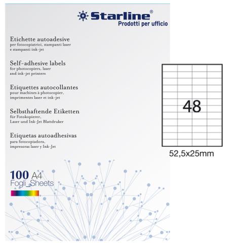 Etichette adesive - in carta - permanenti - 52,5 x 25 mm - 48 et/fg - 100 fogli - bianco - Starline