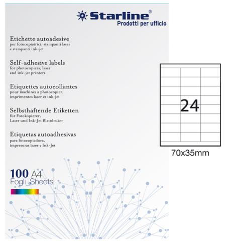 Etichette adesive - in carta - permanenti - 70 x 35 mm - 24 et/fg - 100 fogli - bianco - Starline