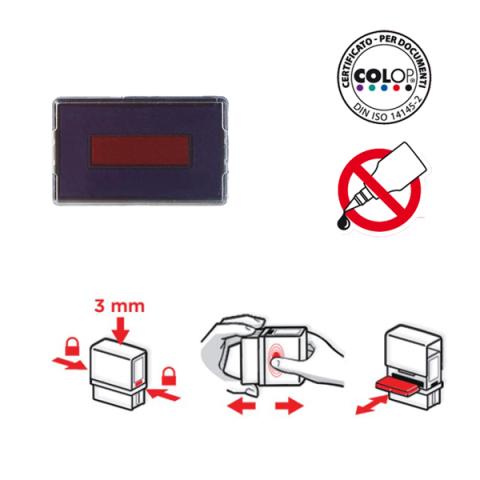 Descrizione / dati tecnici: Cuscinetto inchiostrato di ricambio per timbri Colop, facile da sostituire grazie al sistema pop-out/snap-in. Una volta esaurito il cuscinetto deve essere sostituito, non Þ idoneo ad essere reichiostrato. Confezione da 5 pezzi.