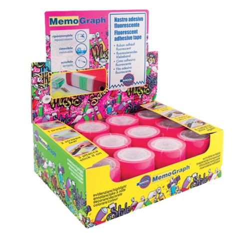 Descrizione / dati tecnici: Nastro adesivo scrivibile e rimovibile, completamente trasparente in colori fluo. Sostituisce il classico foglietto adesivo ma senza staccarsi dalle superfici. Dotato di adesivo rimovibile, può essere staccato e riattaccato più volte senza rovinare i documenti.