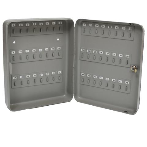 Descrizione / dati tecnici: CASSETTA PORTACHIAVI IN LAMIERA VERNICIATA A POLVERE EPOSSIDICA grigio antracite. Fori per il fissaggio al muro sul retro ed anche in dotazione nr. 2 fischer+ 2 viti + numerini adesivi. SERRATURA A CHIAVE CIFRATA.