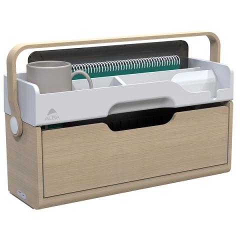 Organizer portatile da scrivania Ergobox S - 42,5 x 23 x 15 cm - legno/PET/ABS - legno/bianco/grigio - Alba