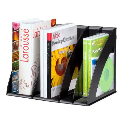 Descrizione / dati tecnici: Portariviste modulare con struttura in robusto polistirene formata da 6 divisori regolabili. I moduli si assemblano consentendo spazi fra i divisori da 5 o da 10cm. Dimensione: 30x22x22cm.