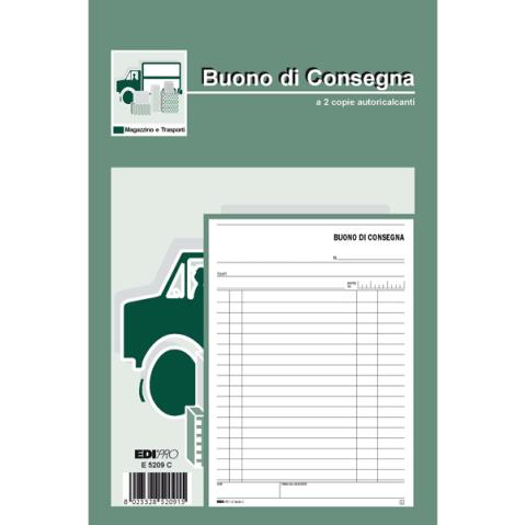 Descrizione / dati tecnici: BLOCCO BUONI DI CONSEGNA. Formato 23 x 15cm. 50 fogli. 2 copie ric.