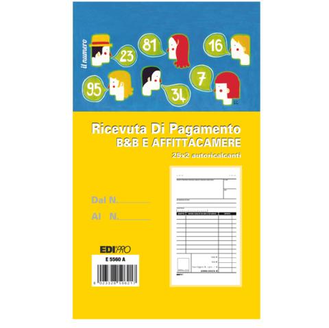 Blocco Ricevuta B&B - affitta camere - 25x2 autoric. - 17x9,9cm - Edipro