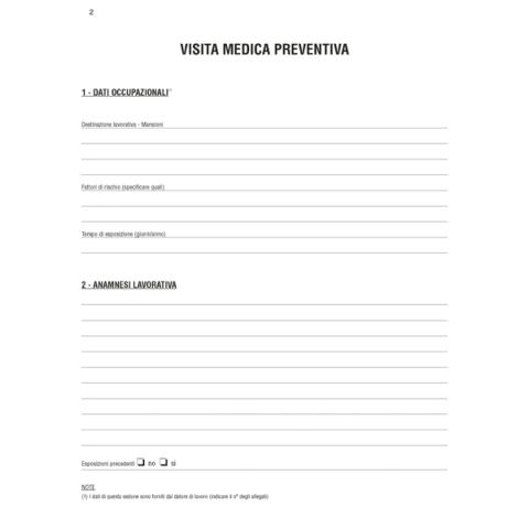 Descrizione / dati tecnici: CARTELLA SANITARIA DI RISCHIO per lavoratori esposti ad agenti cancerogeni. Formato 31 x 24 cm.