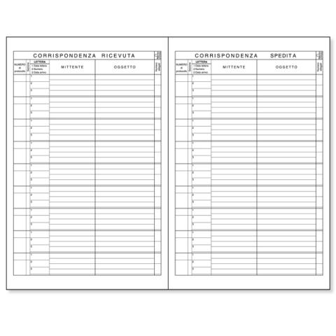 Descrizione / dati tecnici: REGISTRO CORRISPONDENZA RICEVUTA-SPEDITA. Formato 210x310mm. Fogli 100. Uso mano.