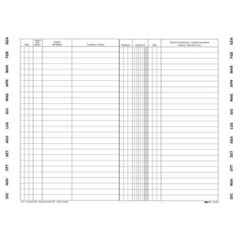 Descrizione / dati tecnici: SCADENZARIO SPIRALATO EFFETTI PASSIVI. Formato 24x17cm. 36fg.