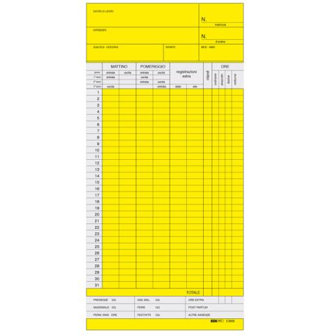 Descrizione / dati tecnici: 100 SCHEDE OROLOGIO MENSILI. Formato 22 x 10cm. Giallo.