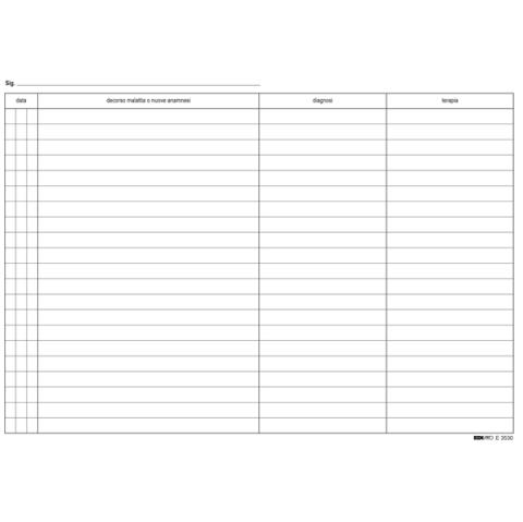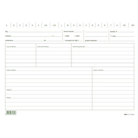 Descrizione / dati tecnici: 100 schede in cartoncino da 170gr. Formato 17 x 24cm orizzontale. Per medici generici.