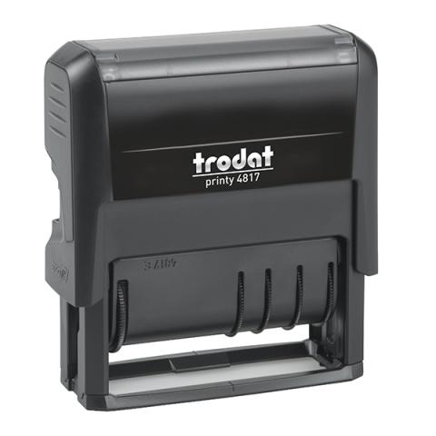 Descrizione / dati tecnici: Datario polinome con 12 testi: FATTURATO, MAILED, VERIFICATO, REGISTRATO, SPEDITO, ORDINATO, SCADENZA, VISTO, PEC DEL, PAGATO, CON R ISERVA, RICEVUTO. Copertura delle bande per l’impostazione pulita della data. Altezza carattere data 3,8mm. Tampone inchiostro 6/4817.