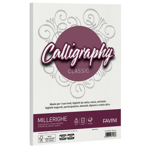 Carta Calligraphy Millerighe - A4 - 200 gr - bianco 01 - Favini - conf. 50 fogli