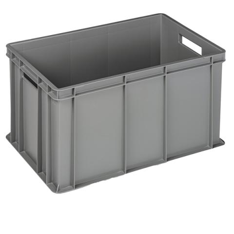 Descrizione / dati tecnici: Cassa serie Europa in PP da riciclo post-industriale certificata PSV (Plastica 2° vita) per il settore industriale ed utilizzi professionali. Colore grigio. Dimensioni: L60 x P40 x H32cm. Capacità: 64L. Coperchio cod. 102654.