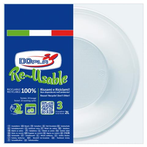 Insalatiera riutilizzabile - rotonda - diametro 13,5 cm - 2 L - PS reuse - bianco - Dopla - conf. 3 pezzi