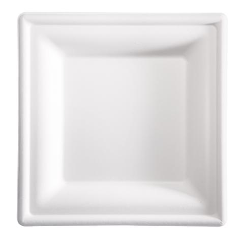 Piatto piano monouso - quadrato - 20 x 20 cm - canna da zucchero - bianco - Signor Bio - conf. 50 pezzi
