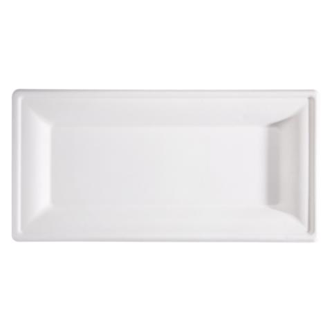 Piatto piano monouso - rettangolare - 26 x 13 cm - canna da zucchero - bianco - Signor Bio - conf. 50 pezzi