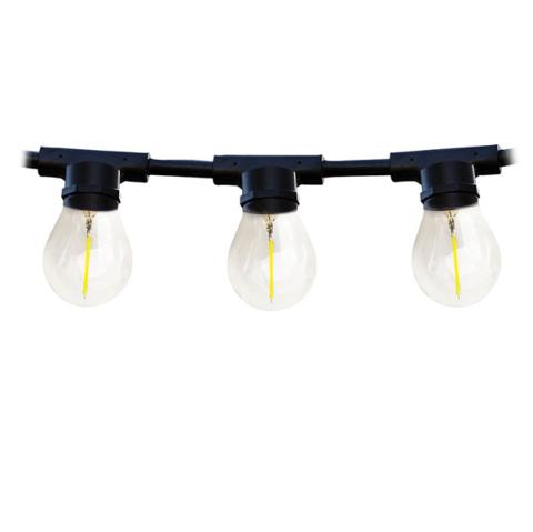 Descrizione / dati tecnici: Cavo portalampade da esterno, flessibile che si collega alla presa elettrica con una normale spina. Dotato di 20 punti luce (attacco E27) distanziati fra loro di 1 metro. Lunghezza del cavo 20 metri.