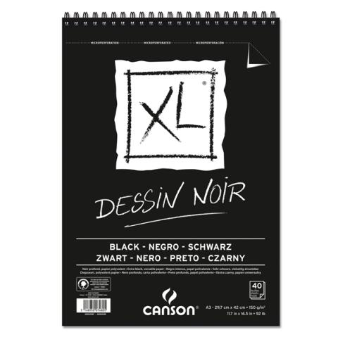 Album spiralato lato corto XL - A3 - 150 gr - 40 fogli - nero - Canson