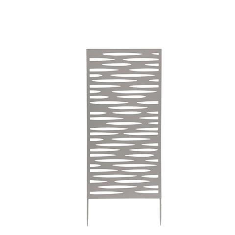 Descrizione / dati tecnici: Pannello decorativo verticale in metallo, adatto per ambienti interni ed esterni, con finitura liscia. Design elegante e minimale, ideale per applicazioni decorative o come elemento divisorio. Dimensioni: 50x100cm, punte di fissaggio: 18cm.