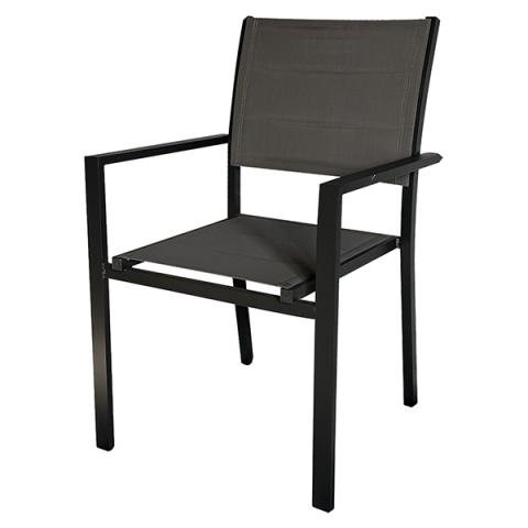 Descrizione / dati tecnici: Sedia con struttura in alluminio verniciato. Schienale e seduta imbottiti in textilene. Portata massima: 120kg. Abbinabili ai tavoli Sardegna e Malta.