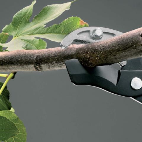 Descrizione / dati tecnici: Troncarami per uso professionale con testa forgiata in acciaio di alta qualità e lama in carbonio SK5 rivestita in teflon. Taglio facilitato. Movimento a ingranaggi. Manici in alluminio con impugnatura ergonomica. Diametro massimo di taglio: 45mm. Lunghezza 75cm - peso 1150g.