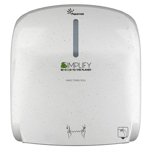 Descrizione / dati tecnici: Dispenser Simplify per asciugamani piegati a Z/W (cod. 421336) realizzato per il 75% da materiale plastico post-consumo e materiali in eccesso proveniente dalla lavorazione del legno, al fine di garantire una riduzione degli sprechi nel rispetto dell'ambiente. Dispenser interamente riciclabili. Design pulito ed elegante, realizzato con materiali antiurto per maggiore praticità.