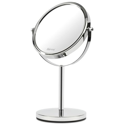 Descrizione / dati tecnici: Specchio per trucco con lente normale x1 e lente ingrandimento x3. Dimensioni: Ø20 x H32cm. Ø specchio: 15,5cm. Rotazione 360°.