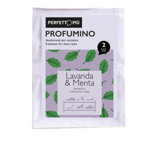 Descrizione / dati tecnici: Deodora la scarpiera, combatte il cattivo odore nell'angolo delle calzature e diffonde un piacevole aroma di lavanda e menta. Contiene: Lavandula Spica Oil, Geranyl acetate, Citronellol, Coumarin, Pinenes, Mentha Viridis Oil, Citrus aurantium Dulcis Oil, L-Carvone, Eucalyptus globulus Oil.