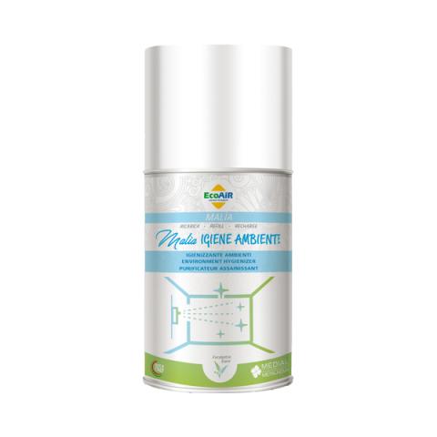 Descrizione / dati tecnici: Igienizzante spray a base d’alcoli e sali d’ammonio quaternari. Esercita un’azione igienizzante su tutte le superfici. Profuma e rinfresca l’aria, neutralizzando i cattivi odori. Bombola da 250 ml.,compatibile con la maggior parte dei dispenser automatici presenti sul mercato. Compatibile con cod. 67545. Circa 2500 erogazioni. Pronto all’uso.
