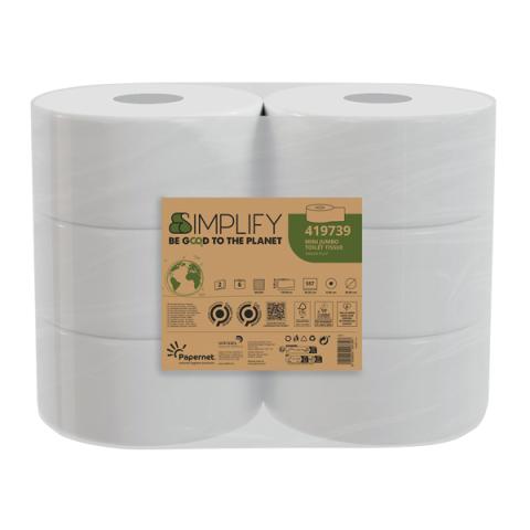 Carta igienica MiniJumbo Simplify - 2 veli - 15 gr - goffratura mini - 557 strappi - Papernet