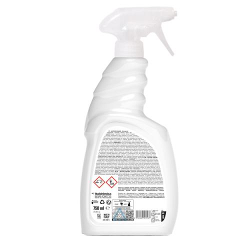 Descrizione / dati tecnici: Detergente sgrassante clorinato elimina odori per superfici dure. Detergente gel cloro-attivo profumato ad effetto sgrassante e igienizzante. Il prodotto in gel aderisce alle pareti verticali pulendo a fondo senza graffiare. Idoneo ai piani di lavoro H.a.c.c.p. Modalità d'uso: Spruzzare il prodotto sulla superficie da trattare. Strofinare con un panno umido pulito. Risciacquare abbondantemente con acqua.