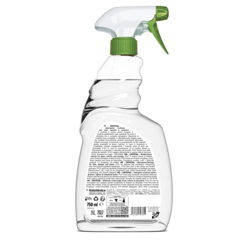 Descrizione / dati tecnici: Detergente multiuso professionale per la pulizia di vetri, cristalli specchi e parti cromate. Rende le superfici brillanti e profumate di pulito senza lasciare aloni. Idoneo ai piani HACCP. Certificato Ecolabel.