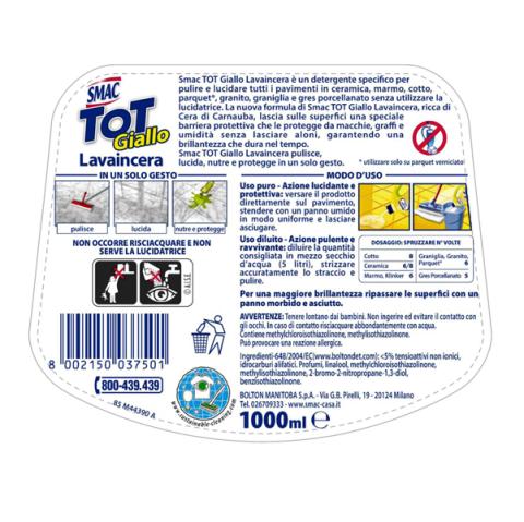 Descrizione / dati tecnici: Deterge e lucida tutte le superfici pregiate in marmo, ceramica, parquet, cotto e granito.