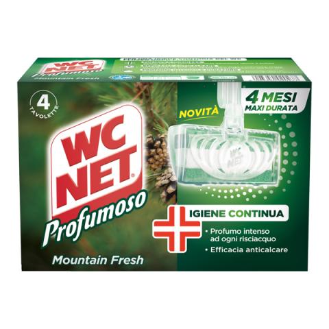 Descrizione / dati tecnici: Azione detergente igienizzante e profumante in gabbietta da fissare al bordo del WC.