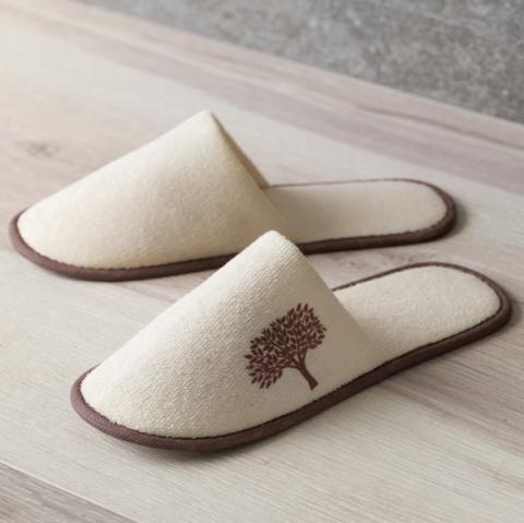 Descrizione / dati tecnici: Ciabatte taglia unica in spugna. Colore avorio e marrone. Articolo monouso.