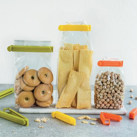 Descrizione / dati tecnici: Confezione da 10 pinze chiudi pacco per richiudere le buste di ogni alimento che desideri mantenere sempre fresco dopo averlo aperto. Disponibili in diversi colori e dimensioni, assicurano una chiusura ermetica salva fragranza. Sono resistenti e affidabili, indispensabili nella dispensa. Confezione contenete: 4 pezzi da 12,5cm, 3 pezzi da 8,5cm, 3 pezzi da 6,5cm. Materiale: 100% polipropilene