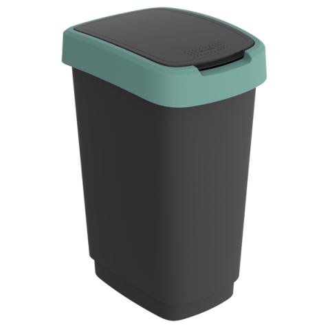 Pattumiera con coperchio basculante - 50 L - 40,1 x 29,1 x 60,2 cm - PPL - nero/verde scuro - Rotho