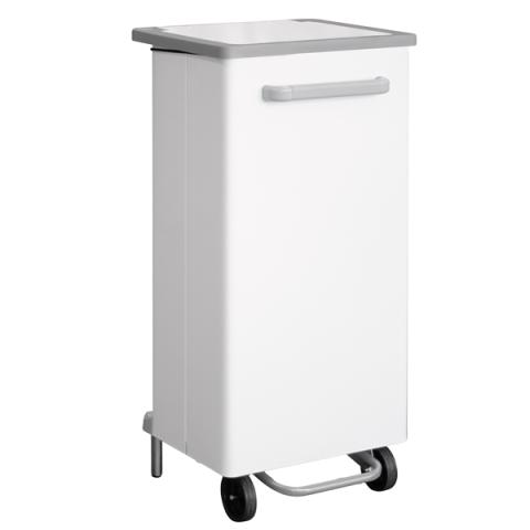Descrizione / dati tecnici: Contenitore a pedale per raccolta rifiuti totalmente in acciaio con svuotamento frontale. Fornito montato. Dimensione: 47x37xH96cm - 110L. Haccp.
