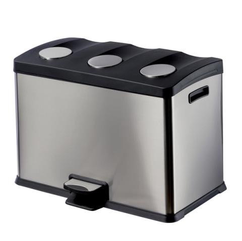 Descrizione / dati tecnici: Ideale per la raccolta differenziata - utilizzo indicato dove Þ necessario attenersi alle procedure haccp. Struttura in acciaio inox satinato antitraccia con base in ABS. maniglie laterali per un facile spostamento. Secchi interni in PPL. Sistema di chiusura del coperchio rallentato e silenzioso. Dimensioni: 3x12lt - l59,3 xp38,2x h43cm. Effettuare una periodica manutenzione per prevenire l’ossidazione del materiale utilizzando una spugna non abrasiva e sciacquando con abbondante acqua, preferibilmente calda. Per prevenire la formazioni di macchie ed aloni è consigliabile asciugare la superficie con uno straccio di cotone. Ogni 10 o 20 pulizie ordinarie, è consigliabile utilizzare prodotti specifici per inox, in spray o crema, non aggressivi.