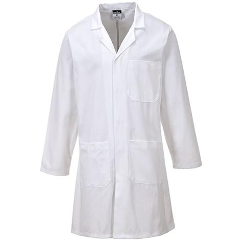 Descrizione / dati tecnici: Camice da lavoro standard resistente e confortevole in 100% cotone non restringente con borchie frontali nascoste, 2 tasche inferiori ed una tasca sul petto. Facile apertura frontale con bottoni automatici. Disponibile su ordinazione da XS a 3XL.