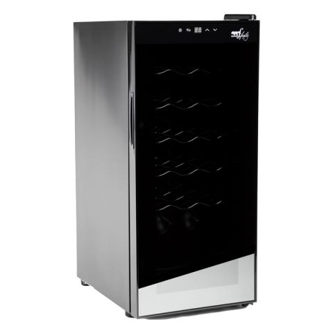 Descrizione / dati tecnici: Cantinettà con capacità: 18 bottiglie/ 50 litri. Sistema di raffreddamento con compressore. Luce interna a LED con autospegnimento dopo 10 minuti, che garantisce un risparmio energetico e consente una limitata produzione di calore per una migliore cura delle bottiglie. Regolazione della temperatura: 5-18°C. Comandi soft touch. Porta in vetro temperato con filtro anti UV con protezione dai raggi ultravioletti. Rumorosità: 43 dB. Ripiani cromati. Piedini regolabili. Auto-defrost. CLASSE G. Alimentazione: 220-240V ~ 50Hz. Potenza: 70W.Colore: nero. Dimensioni :34,5x45x77cm